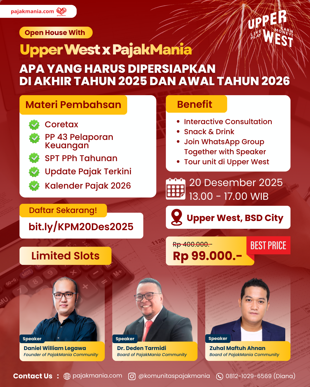 Wadah interaktif untuk para profesional, pelaku usaha, dan masyarakat umum dalam memahami perkembangan kebijakan, regulasi, serta praktik terbaik perpajakan di Indonesia.